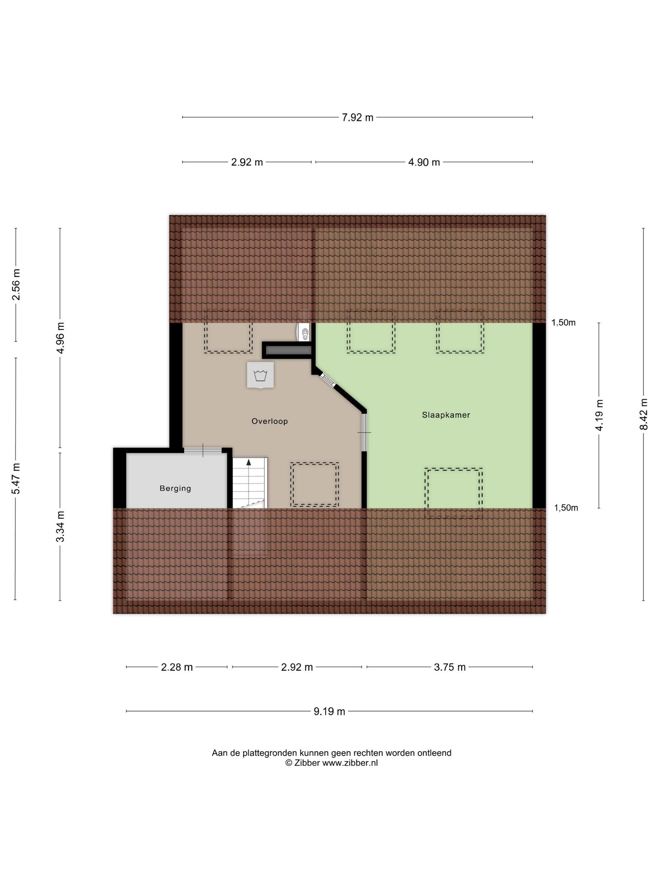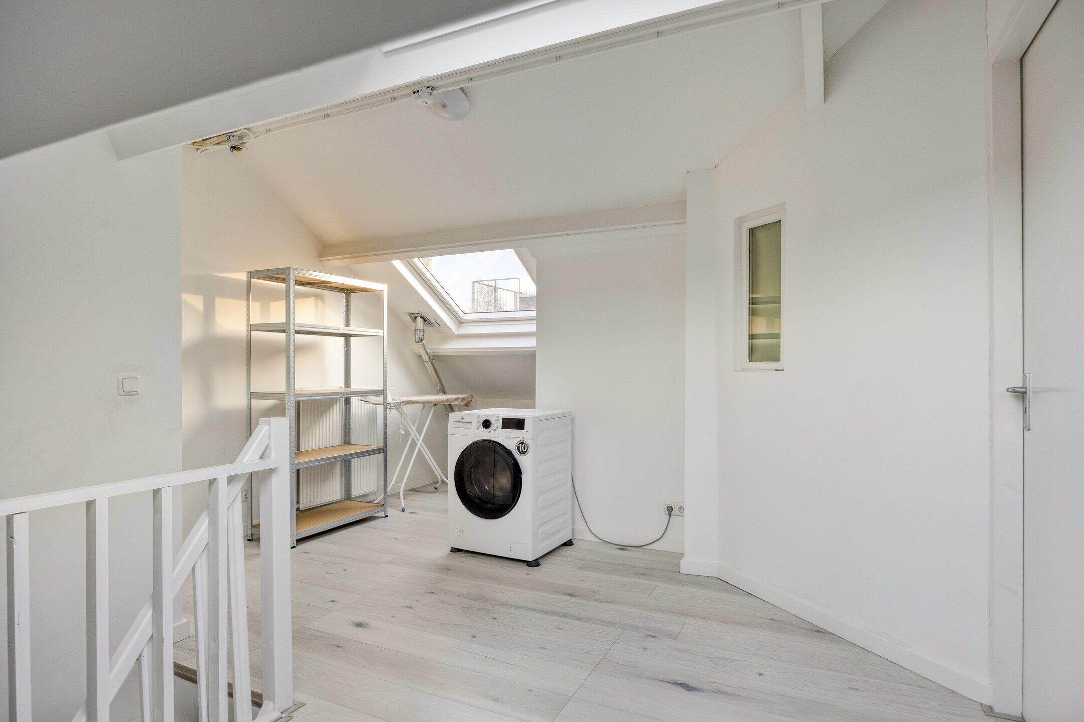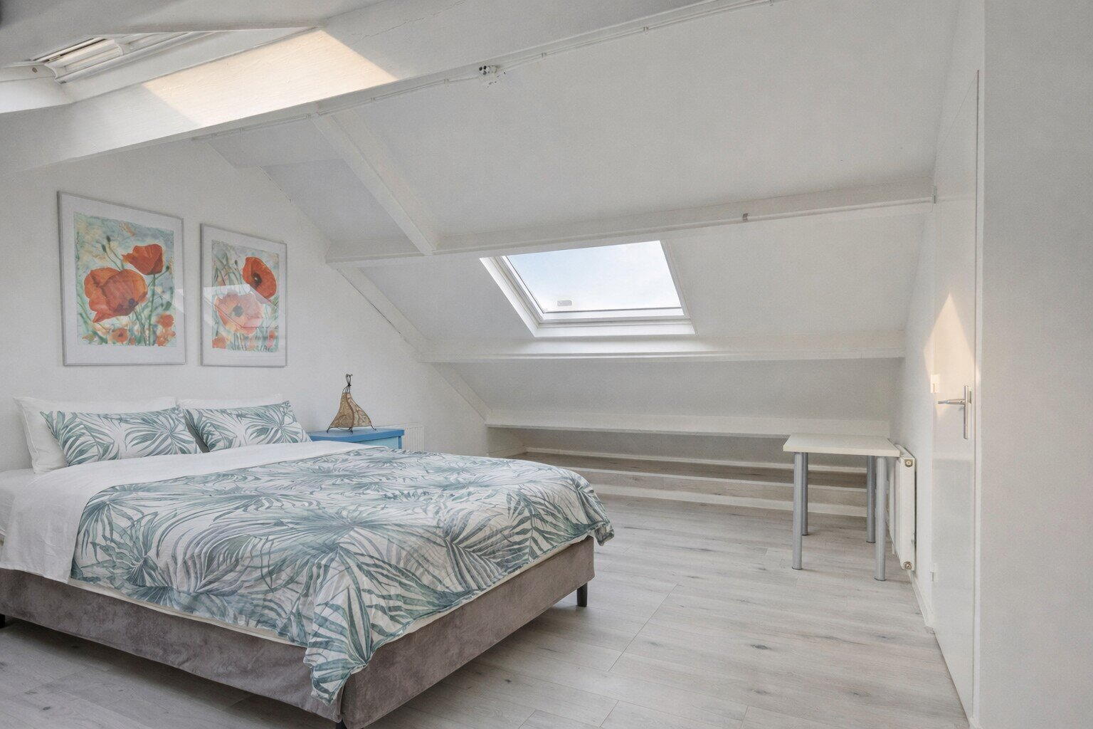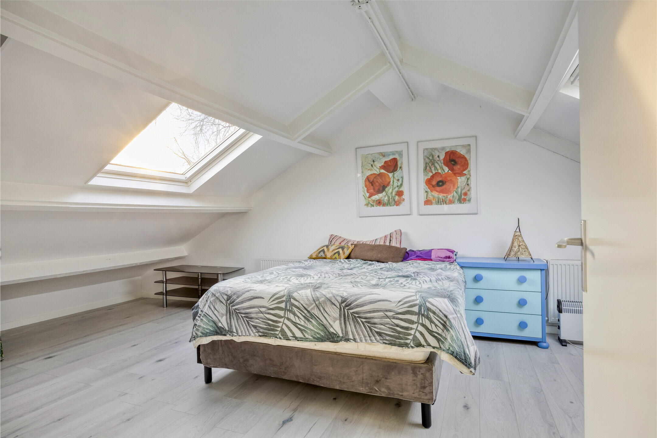 Hier vind je een ruime overloop met wasmachine- en drogeraansluiting en een royale tweede slaapkamer. Dankzij maar liefst drie dakramen is deze kamer opvallend licht en sfeervol. Ook hier is eenvoudig een extra slaapkamer te realiseren.