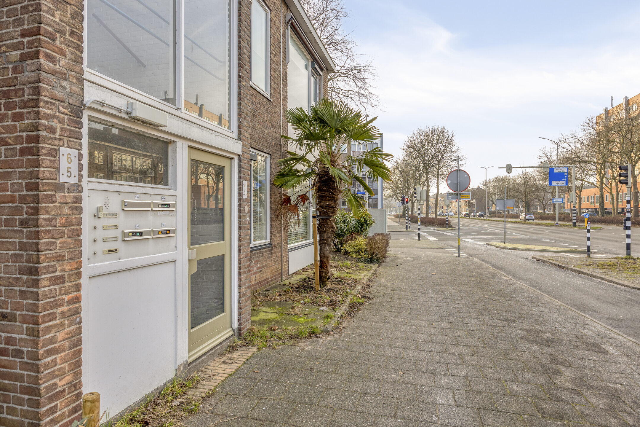 Via de afgesloten entree met bellentableau en brievenbussen kom je in de portiek dat je deelt met slechts drie andere bewoners. De entree van het appartement bereik je met de trap naar de eerste verdieping.